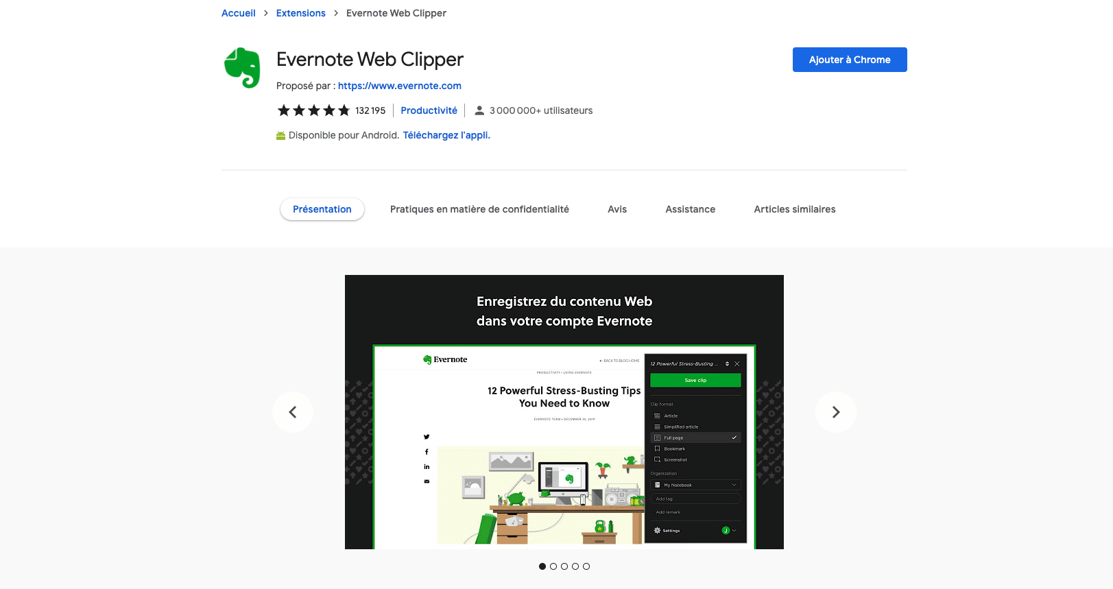Si vous êtes un adepte du célèbre outil de prise de note Evernote, l’extension Web Clipper complètera à merveille son utilisation.