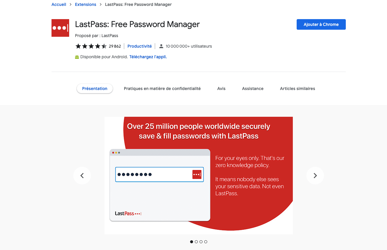 L’utilisation d’un gestionnaire de mots de passe comme LastPass vous changera la vie ! C’est basé sur un modèle freemium et qui enregistre de manière sécurisée les mots de passe. Il peut être synchronisé au niveau des smartphones et module d’extension pour navigateur web.
