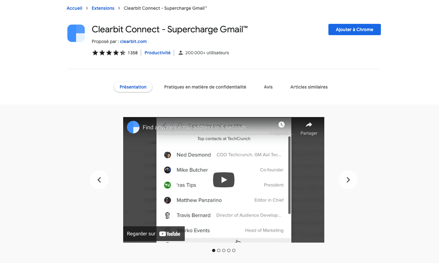 Si dans le cadre de votre travail, vous êtes très sollicité par email, Clearbit Connect devrait vous plaire.