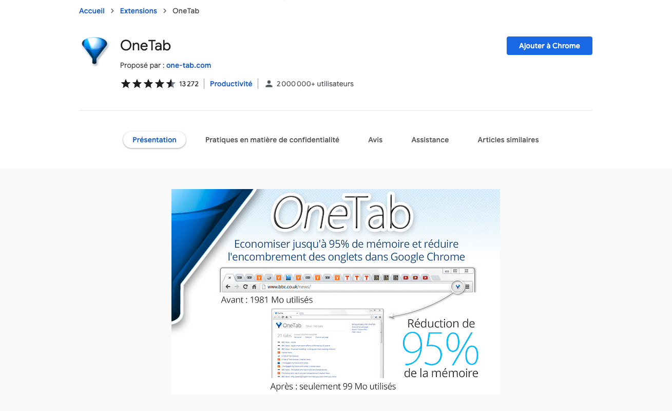 Vous êtes du style à ouvrir une vingtaine d’onglets à la fois dans votre navigateur ? Alors OneTab est incontournable.