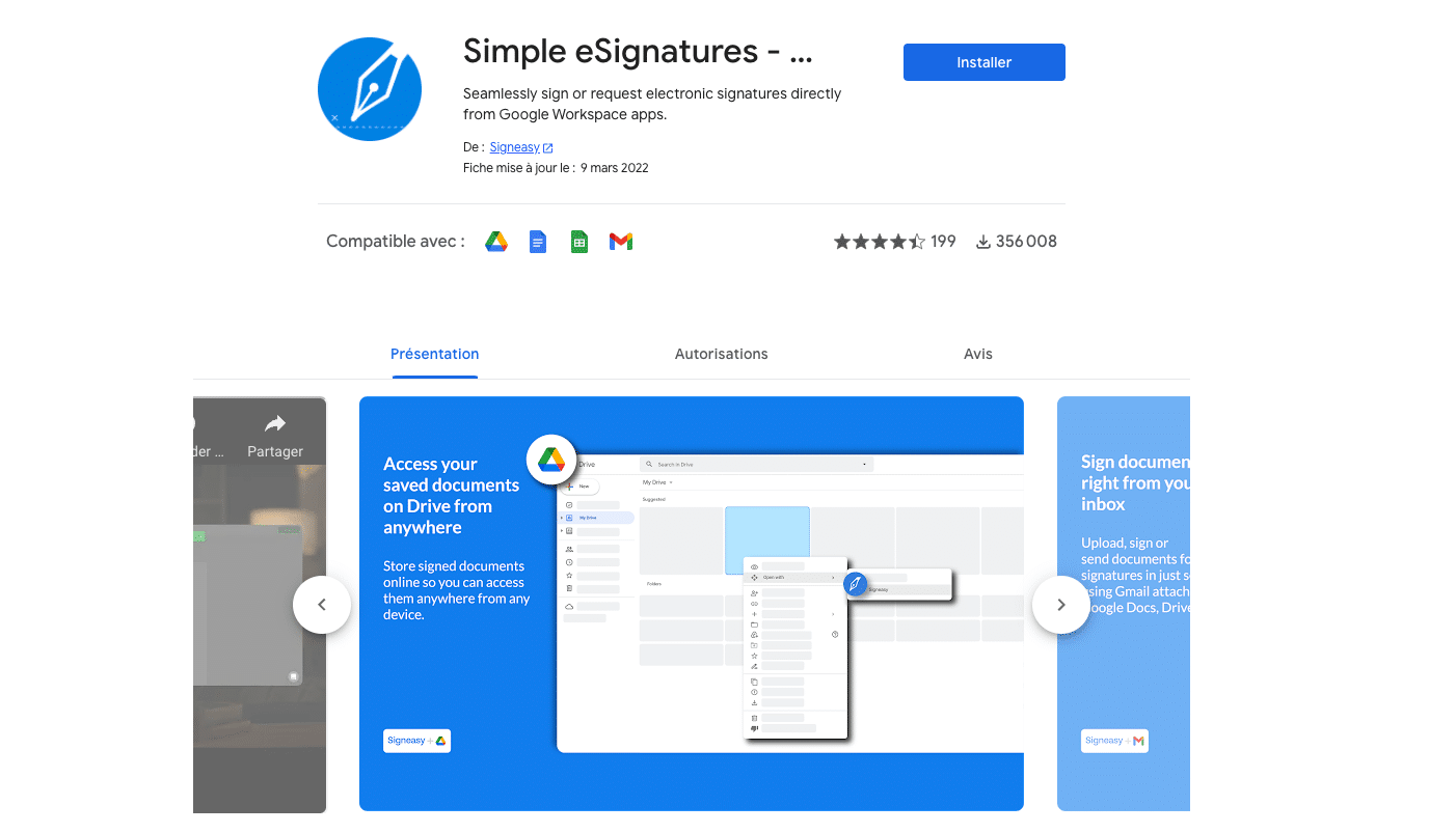 Simple eSignature est une extension très pratique qui vous permet d’ouvrir, de remplir et de signer des documents sans même sortir de Gmail.