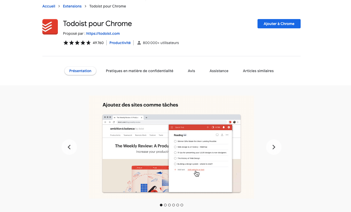 Todoist est l’une des meilleures solutions de ce type, et elle dispose d’une application Chrome très pratique. Vous devenez ultra efficace, vous savez que tout est organisé et planifié alors vous pouvez afin avancer sur ce qui compte pour votre business. Avec un visuel clair, vous ne perdez pas vos taches de la journée.