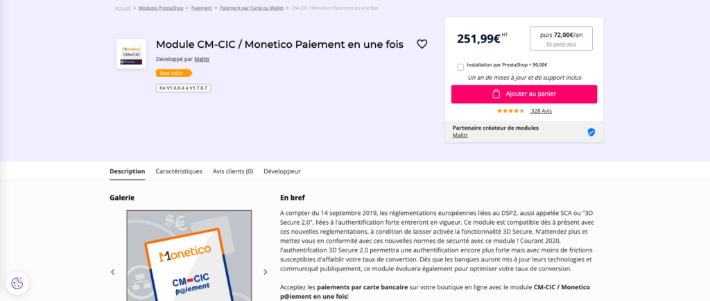 Au même endroit que la fiche explicative, vous pouvez acheter le module choisi, s’il est payant. Ou alors, vous n’avez qu’à le télécharger.
